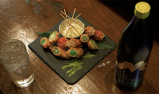「豚巻きの塩加減とチーズのコクがベストマッチ!コレは焼酎が進めます!」と中原さんも太鼓判を押す逸品です。