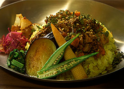 「根菜の食感を残して作ってます。スパイスは16種類入れています。」と紗良さん。