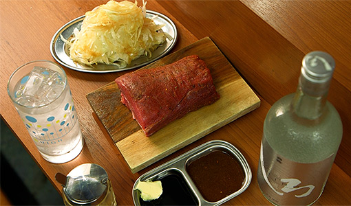 武蔵小路で人気の『ヒレ肉じゅんちゃん』へ。『銀ハイ』で乾杯!ブロックのヒレ肉をスタッフが最高の焼き加減で仕上げてくれる。フォークで裂いてタレが絡みやすく焼き上がったヒレ肉は、まさに絶品!ヒレ肉がたっぷり入った『牛ひれ肉汁カレー』はヒレ肉専門店ならではのウマさ。
